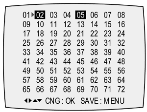4) When selection of the option number is completed, press the “OK” button on the remote control. (If “OK” button is pressed, the selected number colour is reversed